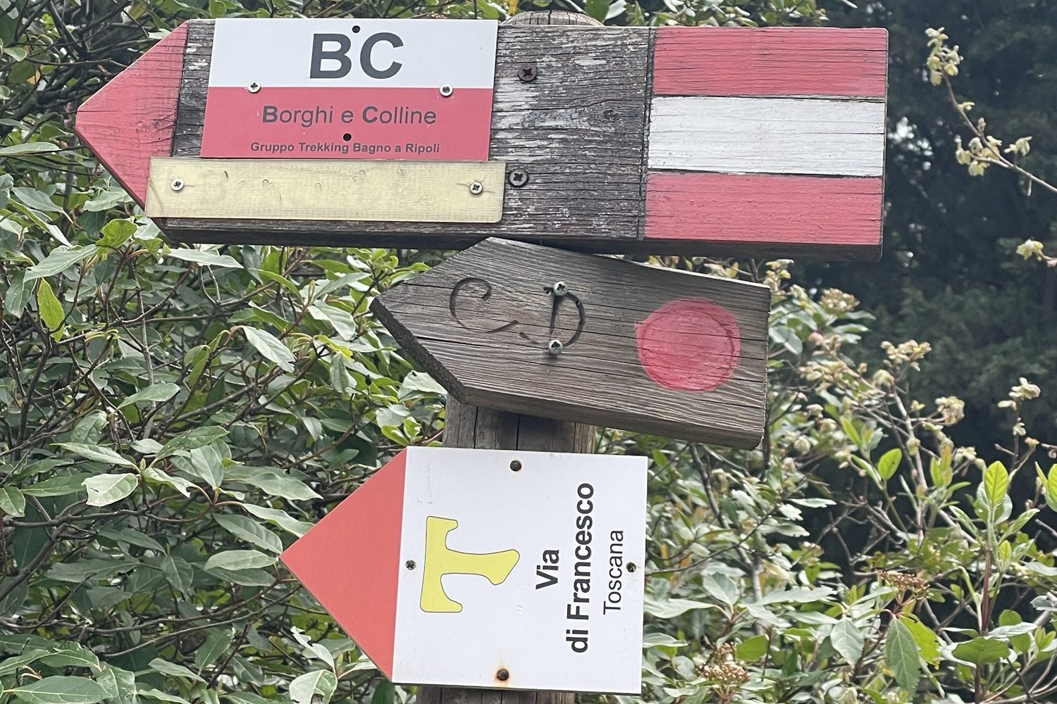 ‘I can’t get over the fact someone has gone to all this effort to mark this trail!’ I kept repeating, euphoric that someone out there might be more obsessed by Dante than me. Each sign post for the Dante trail had been marked with a red sticker on a lamppost or a wooden sign with the letters CD singed into it by hand by the trail’s father, Oliviero Resta, who I hope to meet in person in Ravenna.