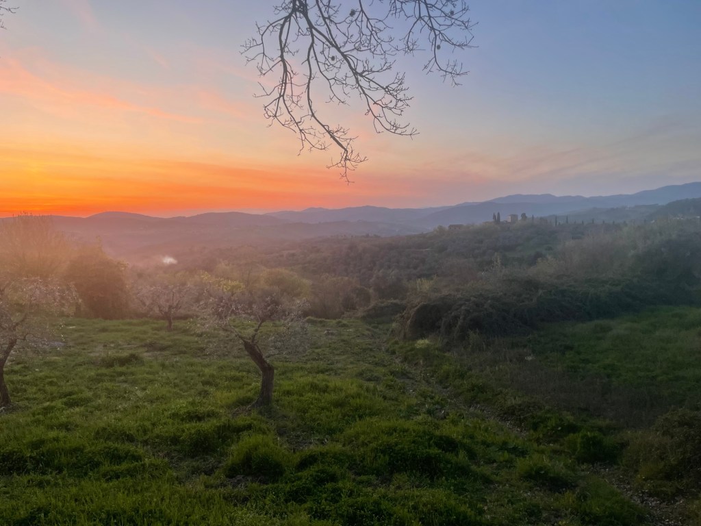 At 5pm, our host, Stefano offered to pick us up in the neighbouring village but we were insistent that we would carry on. We resisted the temptation to stay in Rignano sull’Arno for a Palestine solidarity music night and arrived at Pieve a Pitiana at around 8 in the evening with the sun setting behind us.