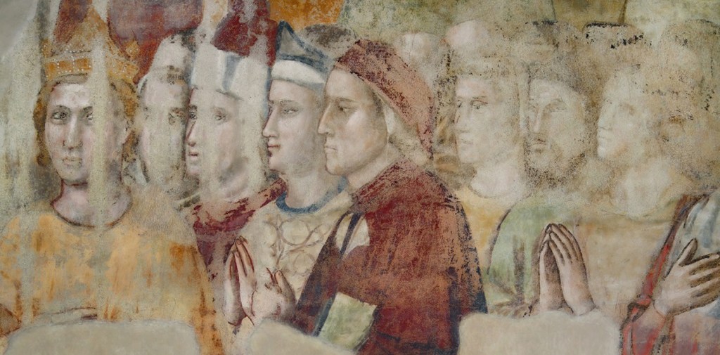 The painting was commissioned by the church in 1494, so some 100 years after Dante walked the squares of Florence. Lippi’s style is sensual. Gone are the 2D Giotto era portraits of Jesus looking like an adult squeezed into a baby-sized body. Lippi was a contemporary of Botticelli whose fleshy Madonnas continue to mesmerize visitors to the Uffizi with their delicate features.
