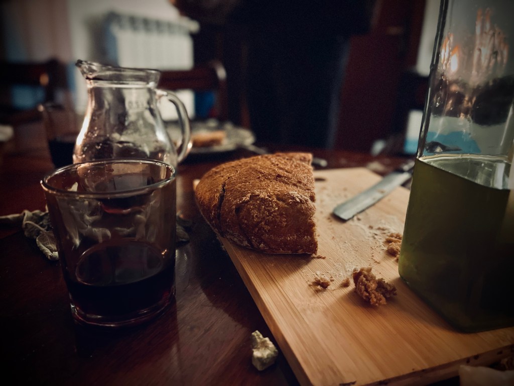 Thus, we ate a delicious supper together of peas marinated in freshly harvested onions, stock and laurel leaves. Kelsey and I contributed a spinach and cheese crescione and a great deal of gratitude. Her and Giordano also ate some rabbit that was reheated from the night before.