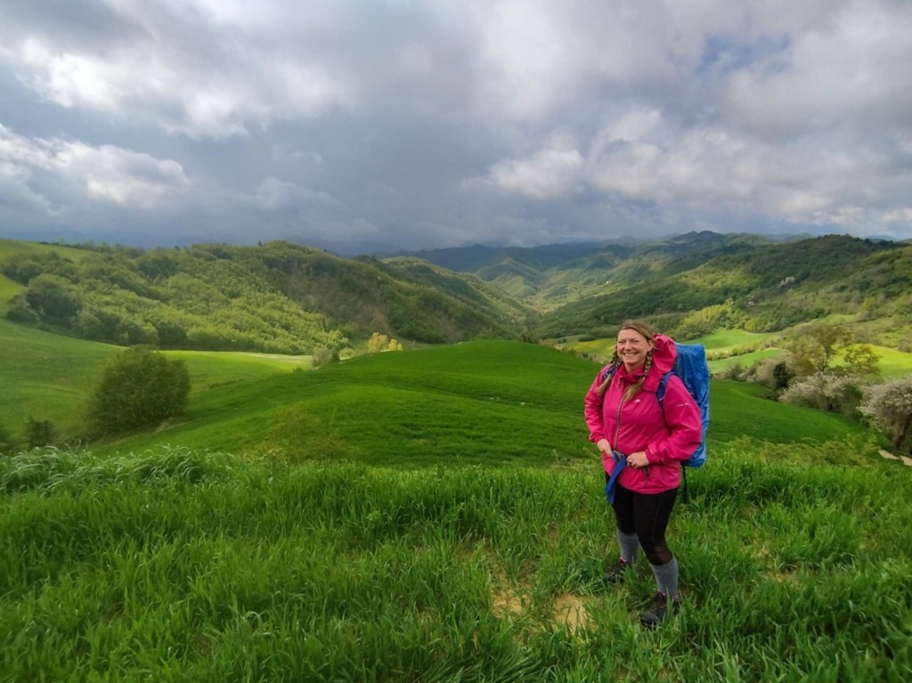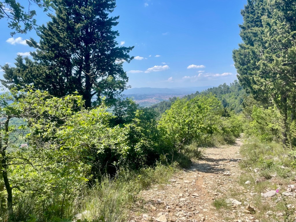 After a steep ascent up to the Convento dell’Incontro, I got my first sight of her. There she was before me once more with a skyline woven in orange thread: Florence, the most beautiful city in the world. There was the Duomo, San Lorenzo and Giotto’s tower. And there, somewhere in the hazy distance, were Alina and Kelsey who had travelled specially to Florence to meet me at the end of my cammino.