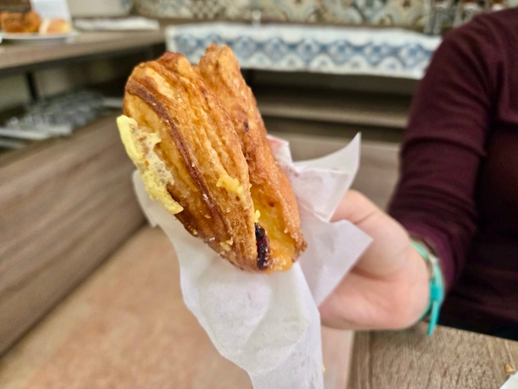 From Palazzo Vecchio I weaved in and out of guide groups who were following umbrellas of every neon hue. Three people were eating the special Florentine schiacciata on the move. A little Canadian girl was playing with a wooden sword.