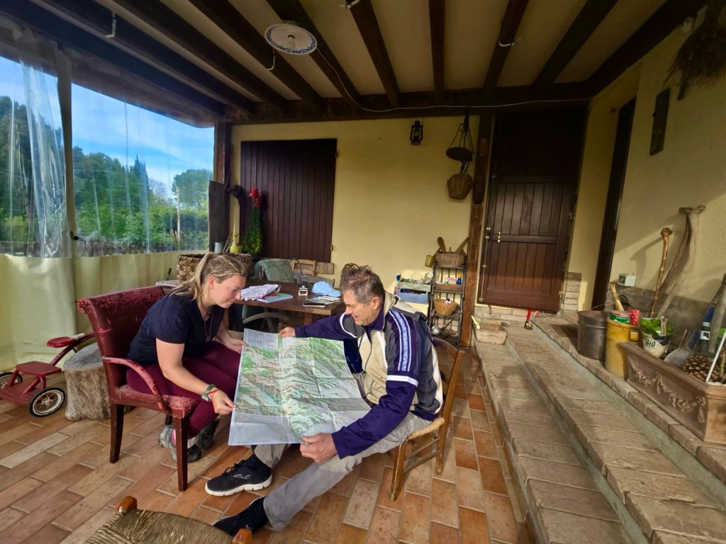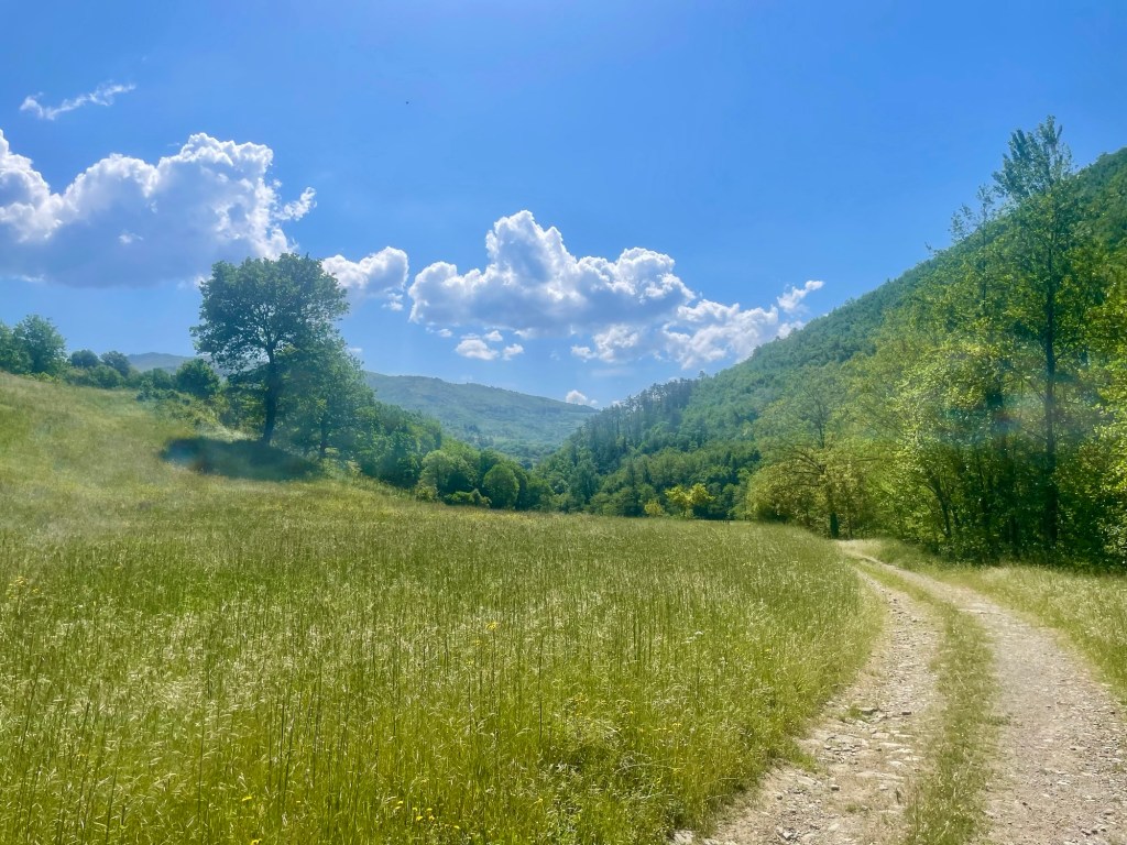 I retraced the path of the beginning of the cammino which I’d hiked with Alina at my side, recalling the same beehives, hens and the same random upturned table in the middle of a lawn.