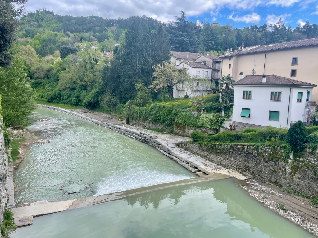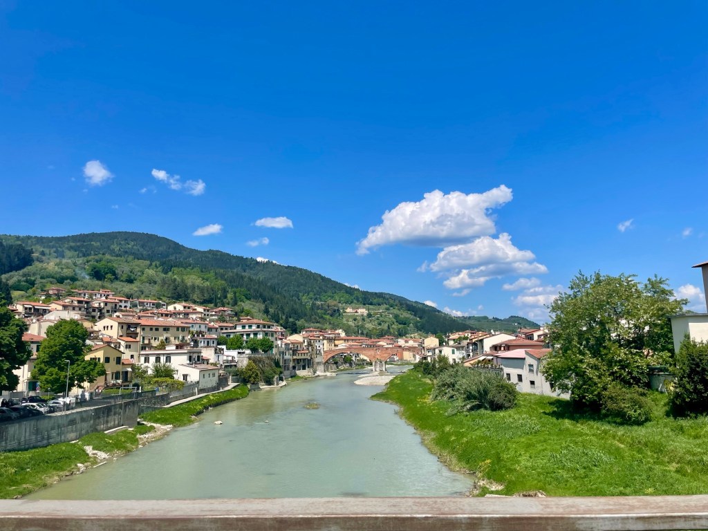 I went down the hill past the beautiful medieval bridge that had been damaged in the recent floods and stopped at an old bakery to purchase some pizza and fizzy water. The streets were bustling with people and, despite my fatigue, I found myself whistling in good cheer.