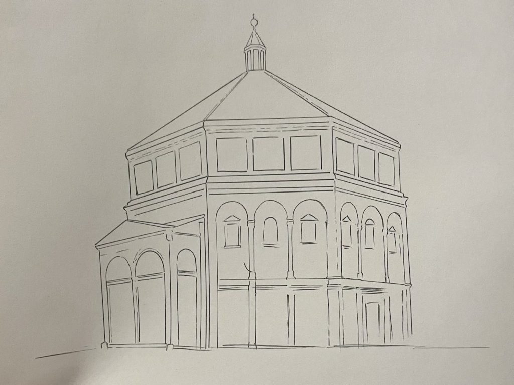 And with that, I turned the corner and there she was, the baptistry in her green and white marble.