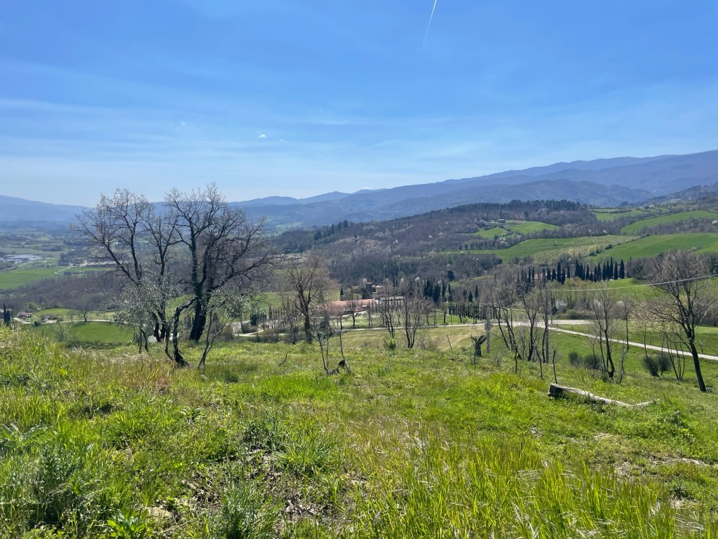 I stopped to pull out some horse chestnut spikes from my hands and finally re-found the path. It was 3pm and I’d only hiked some 12 kilometres and climbed nearly 120 floors but I was only about 6 kilometres along today’s 17 kilometre stretch of the cammino. My arms looked like I’d had a fight with the cat. I flicked an ant off my leg.